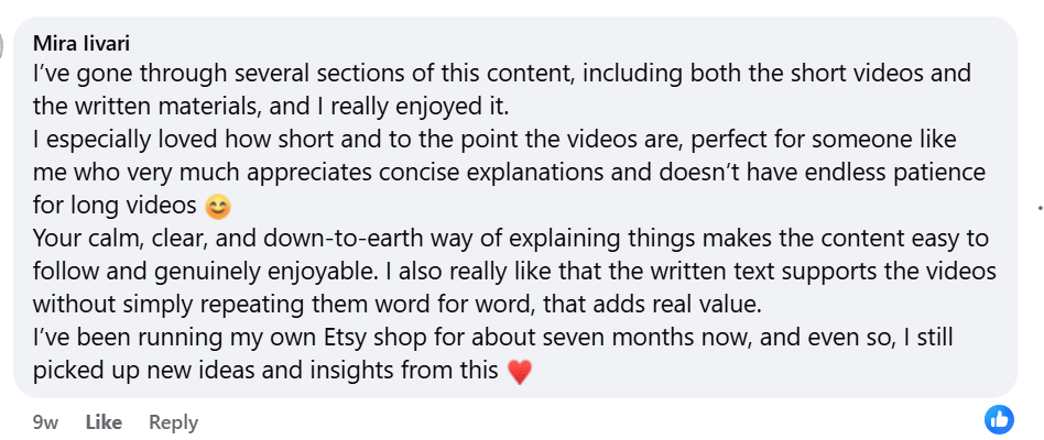 A beginner-friendly path with short, clear video lessons that guide you from idea to live Etsy listing.